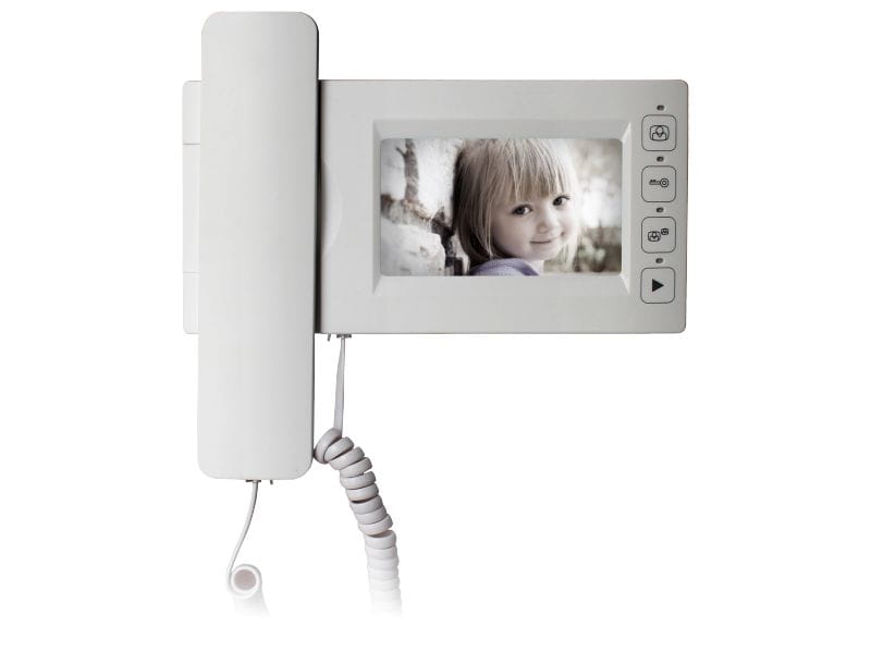 Monitor słuchawkowy do wideodomofonów jednorodzinnych marki Abaxo. Posiada wbudowaną pamięć 20 zdjęć, obsługuje dwa wejścia (dwie kamery). Wyświetlacz LCD wielkości 4.3" w formacie panoramicznym 16:9.