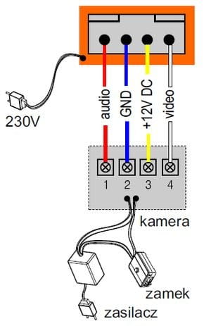 - instalacja czteroprzewodowa + obwód elektrozamka