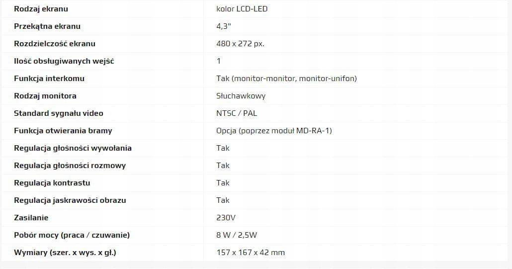 WIDEODOMOFON SŁUCHAWKOWY 4,3" z