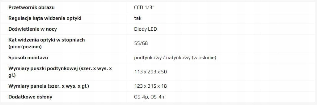- współpracuje z monitorami analogowymi w systemie 4-żyłowym (czarno-białymi lub kolor w standardzie PAL)