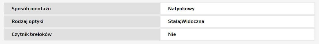 Parametry techniczne: