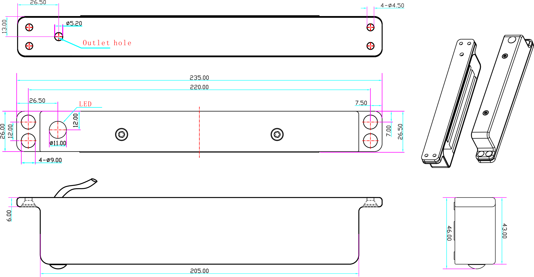 EL-600WSL zwora elektromagnetyczna zewnętrzna 280kg