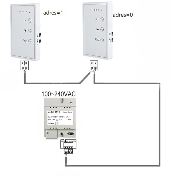 Interkom Vidos 2x U1011, instalacja dwu żyłowa.