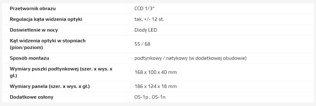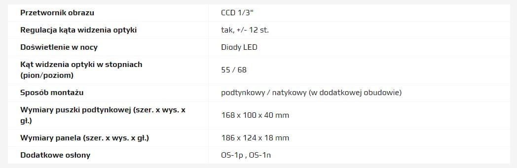 - dostępne osłony: OS-1p (podtynkowa) , OS-1n (natynkowa)