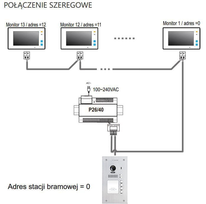 Maksymalna obsługiwana ilość urządzeń wewnętrznych – 4 dowolne monitory/unifony dla każdego lokalu.