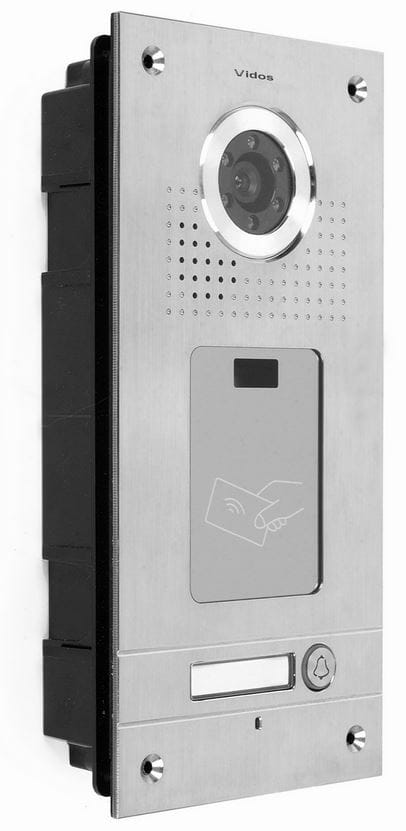 Jednoabonentowa stacja bramowa z wbudowanym czytnikiem RFID. Stacje S561A to rozwiązanie dla osób, dla których wygoda i komfort użytkowania mają duże znaczenie. System sprawdza się doskonale w sytuacjach gdy udzielamy dostępu większej liczbie osób. Można samodzielnie kodować nowe karty użytkowników. Wbudowany czytnik RFiD pozwala na otwieranie elektrozaczepu przy pomocy karty, breloka lub naklejki zbliżeniowej. W modelu S561A możemy zaprogramować do 1000 kart użytkowników. Stacja bramowa została wyposażona w kolorową kamerę z możliwością regulacji w poziomie i w pionie w zakresie kilkunastu stopni. Podświetlana klawiatura i szyld.