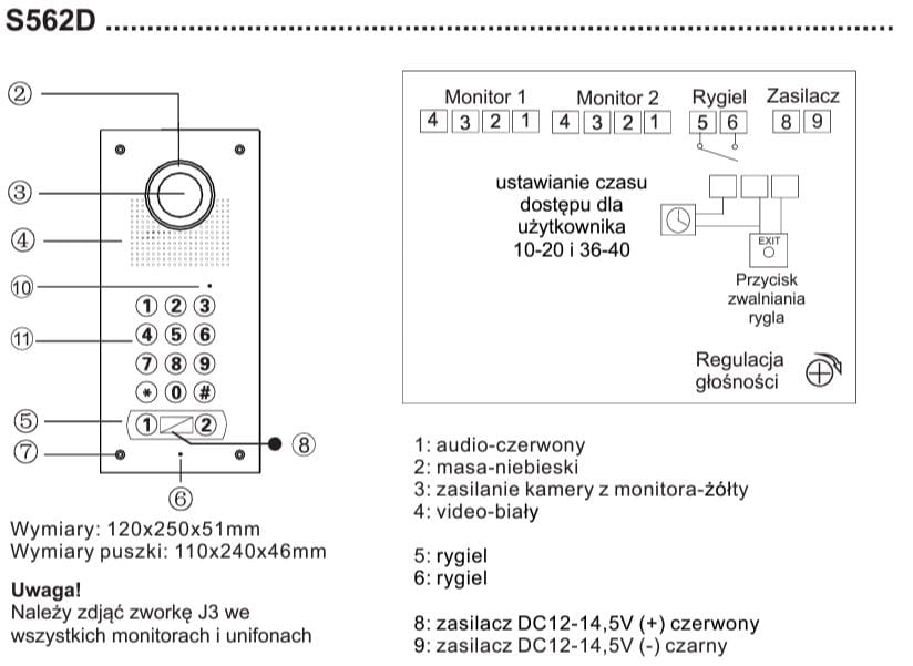 - instalacja 4-przewoda z monitorem + 2 żyły do rygla