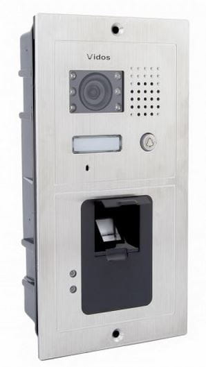 Jednoabonentowa stacja bramowa z wbudowanym czytnikiem linii papilarnych.