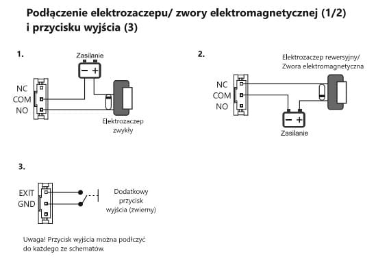 - Wyjście do elektrozaczepu: przekaźnikowe, beznapięciowe NO | NC