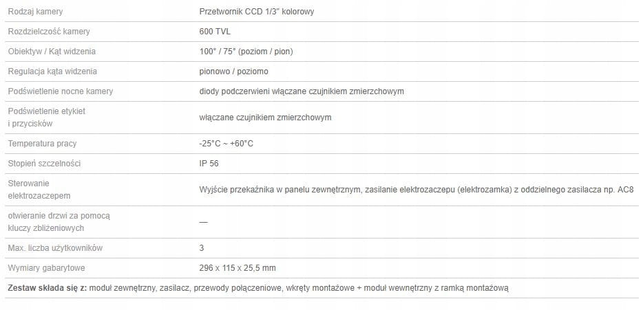 - możliwość prowadzenia rozmowy pomiędzy modułami zewnętrznym (panel bramowy z kamerą) i wewnętrznym (monitor)