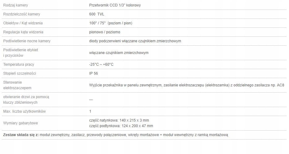 - możliwość prowadzenia rozmowy pomiędzy modułami zewnętrznym (panel bramowy z kamerą) i wewnętrznym (monitor)