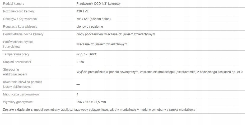 - - możliwość prowadzenia rozmowy pomiędzy modułami zewnętrznym (panel bramowy z kamerą) i wewnętrznym (monitor)