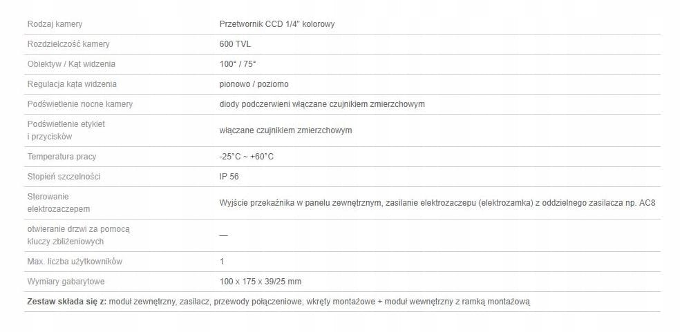 - tworzy zestaw wideofonowy z 4-przewodowym panelem bramowym KENWEI