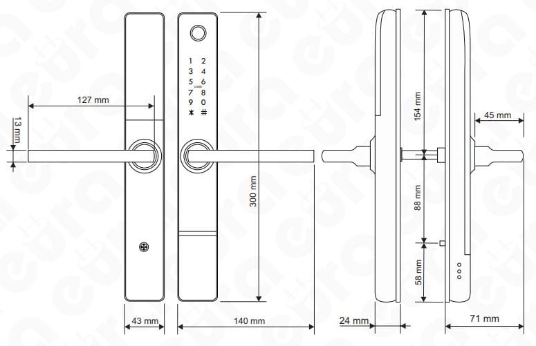 KLAMKA Z KONTROLEREM DOSTĘPU ''EURA'' ELH-71H4 silver - długi, wąskoprofilowy, szyfrator, czytnik Mifare 13,56 MHz
