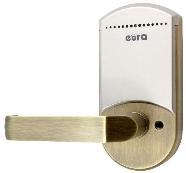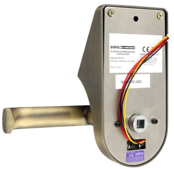 Szyld z kontrolą dostępu Eura "ELH-60B9 brass" w prosty sposób ogranicza dostęp do pomieszczeń osobom nieuprawnionym. Kontroler dostępu przeznaczony jest do montażu zarówno w drzwiach otwieranych na lewo, jak i prawo, a uniwersalny rozstaw śrub mocujących 38~40,5 mm w większości przypadków pozwala na wykorzystanie zamka już zamontowanego w drzwiach. Urządzenie umożliwia zakodowanie do 100 kart zbliżeniowych i przeznaczony jest do montażu wewnątrz budynku.