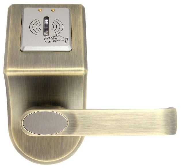 Klamka zamek szyfrowy na kartę szyld Eura ELH-60B9 brass z czytnikiem RFID, uniwersalny rozstaw śrub mocujących