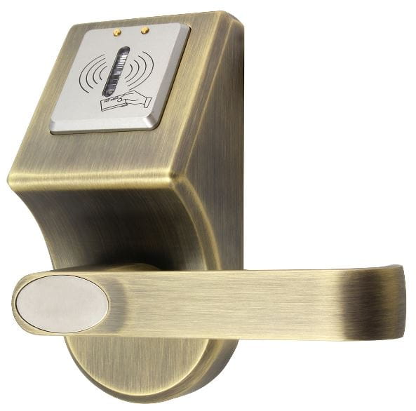 Na korpusie szyldu znajduje się czytnik kart zbliżeniowych (RFID). Po zbliżeniu karty lub breloka do czytnika, następuje podanie impulsu z modułu kontroli dostępu, po czym serwomotor odblokowuje przekładnię mechaniczną, umożliwiając tym samym otwarcie drzwi poprzez normalne przyciśnięcie klamki na szyldzie zewnętrznym. Okres oczekiwania na wciśnięcie klamki ustawiony jest fabrycznie na okres ok. 5 sekund, po tym czasie następuje ponowna blokada przekładni i przejście zamka w stan oczekiwania na podanie kolejnego impulsu.