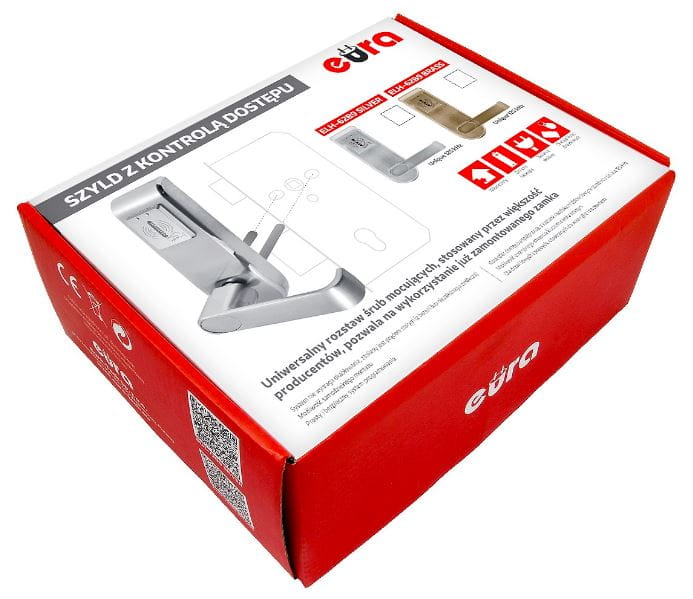 Szyld z kontrolą dostępu Eura "ELH-62B9" w prosty sposób ogranicza dostęp do pomieszczeń osobom nieuprawnionym. Kontroler dostępu przeznaczony jest do montażu zarówno w drzwiach otwieranych na lewo, jak i prawo, a uniwersalny rozstaw śrub mocujących 38~40,5 mm w większości przypadków pozwala na wykorzystanie zamka już zamontowanego w drzwiach. Urządzenie umożliwia zakodowanie do 100 kart zbliżeniowych i przeznaczony jest do montażu wewnątrz budynku.