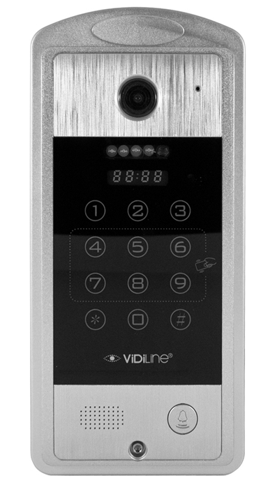 Panel wideodomofonowy do montażu na zewnątrz budynku natynkowo i podtynkowo. Posiada moduł kamery z diodamy podczerwieni, co umożliwia bezproblemową pracę w warunkach nocnych. Urządzenie posiada wbudowany czytnik RFID oraz szyfrator, dzięki czemu otwarcie elektrozamka może odbyć się przy użyciu breloka RFID, karty lub kodu. Otwieranie zamka czy też prowadzenie rozmowy odbywa się bez konieczności wywołania ze strony panela wewnętrznego.