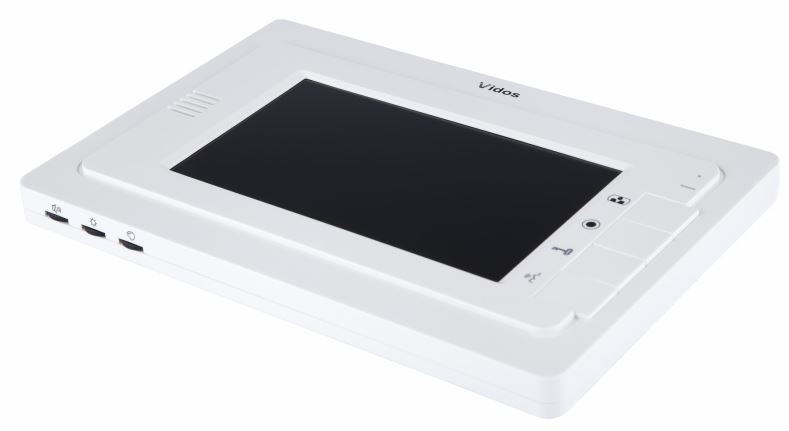 Głośnomówiący, bezsłuchawkowy monitor wideodomofonowy. Monitor wyposażony jest w 7″ kolorowy ekran panoramiczny TFT LCD. Obsługuje 2 stacje bramowe (2 stacje lub 1 stacja + kamera CCTV). Możliwy podgląd z kamery. System można rozbudować o dodatkowe 3 monitory lub unifony. Sterowanie elektrozaczepem. Monitor występuje w dwóch kolorach obudowy: czarnym i białym.