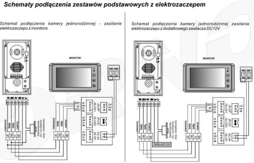 - elektrozamek o napięciu stałym 12V i poborze prądu nie większym niż 250 mA nie wymaga dodatkowego zasilania