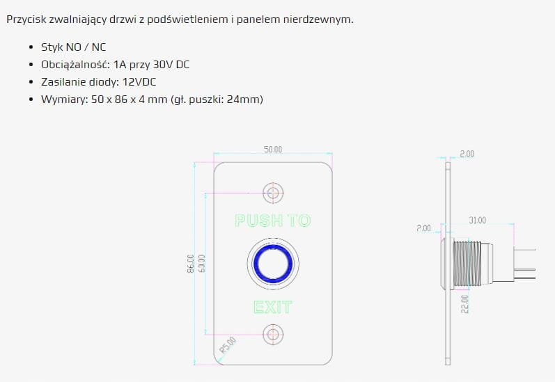 BT-7AN przycisk wyjścia podtynkowy podświetlenie