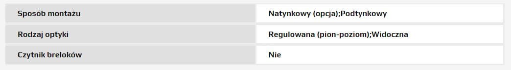 - pełna regulacja kąta widzenia (pion - poziom: 12 stopni)