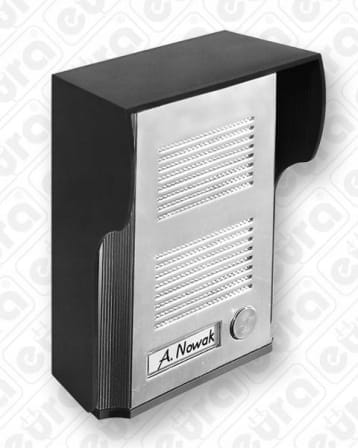 - zasilanie napięciem bezpiecznym z zasilacza. Moduł zewnętrzny zamknięty jest w obudowie plastikowo-aluminiowej z dodatkowym daszkiem ochronnym, który zabezpiecza moduł przed skutkami opadów atmosferycznych.