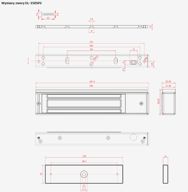 EL-350SP2 Zwora elektromagnetyczna 180kg z sygnalizacją