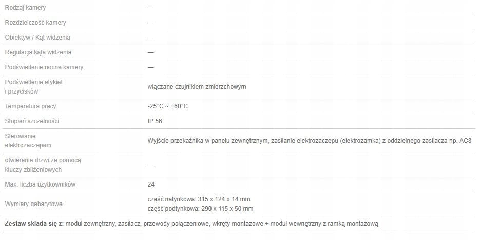 Wideodomofon VDP-62 Virone furtka, brama, czytnik RFID