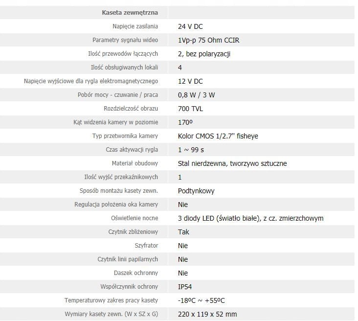 KASETA ZEWNĘTRZNA WIDEODOMOFONU