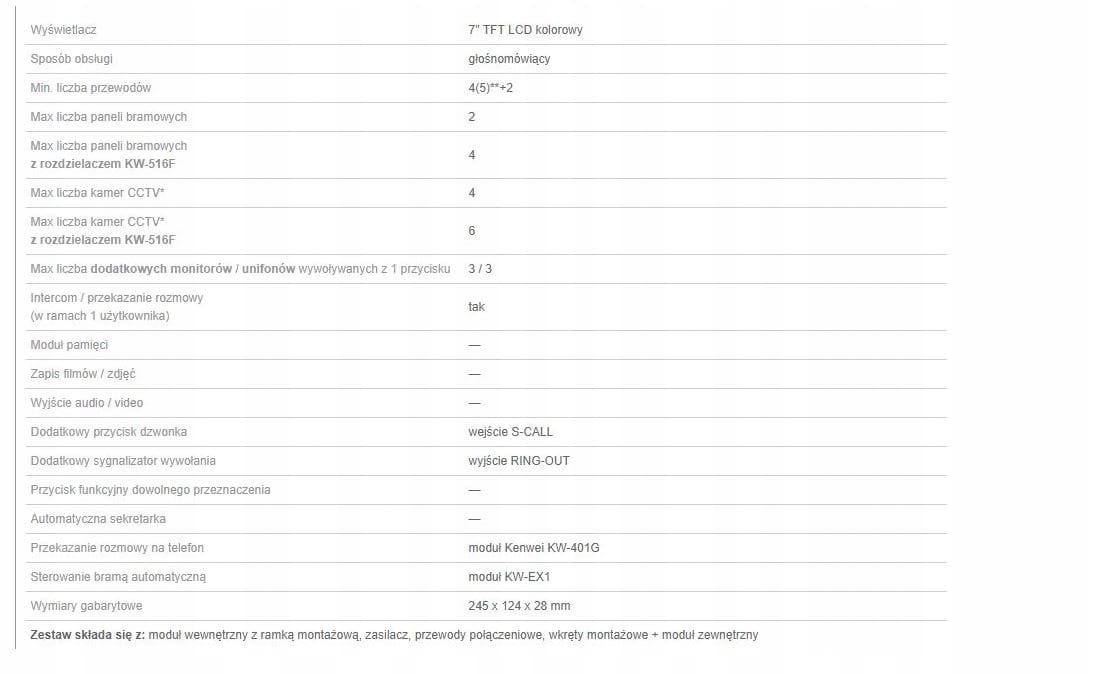 - tworzy zestaw wideofonowy z 4-przewodowym panelem bramowym KENWEI