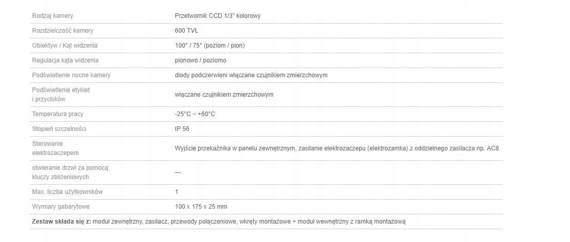 - możliwość prowadzenia rozmowy pomiędzy modułem zewnętrznym (panel zewnętrzny z kamerą) i wewnętrznym (monitor wideodomofonu)