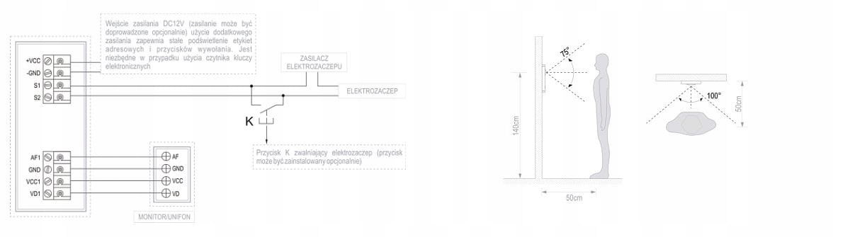 - kąt widzenia 100° / 75°, regulacja kąta widzenia poziom / pion