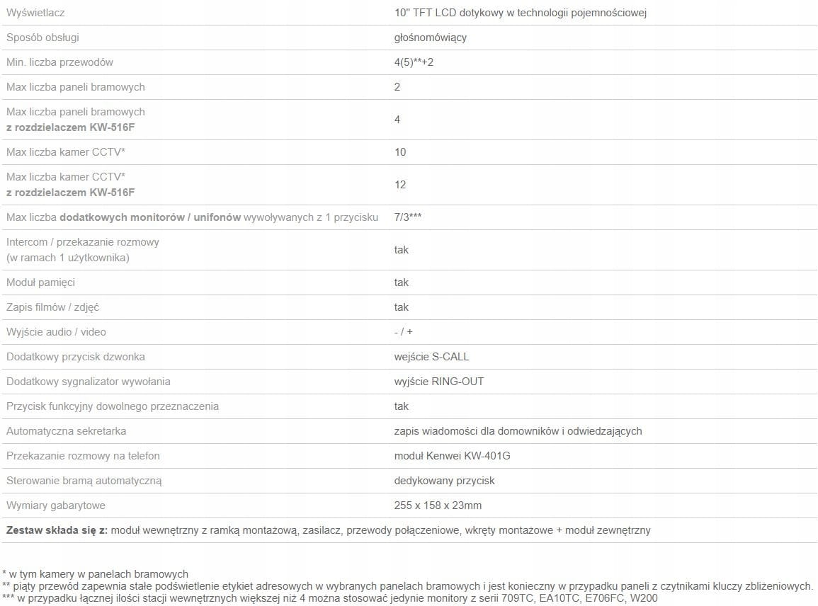 - tworzy zestaw wideofonowy z 4-przewodowym panelem bramowym KENWEI