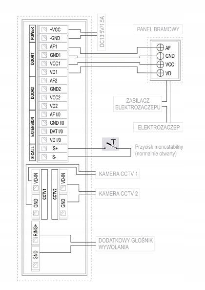 - możliwość podłączenia dodatkowego przycisku dzwonka