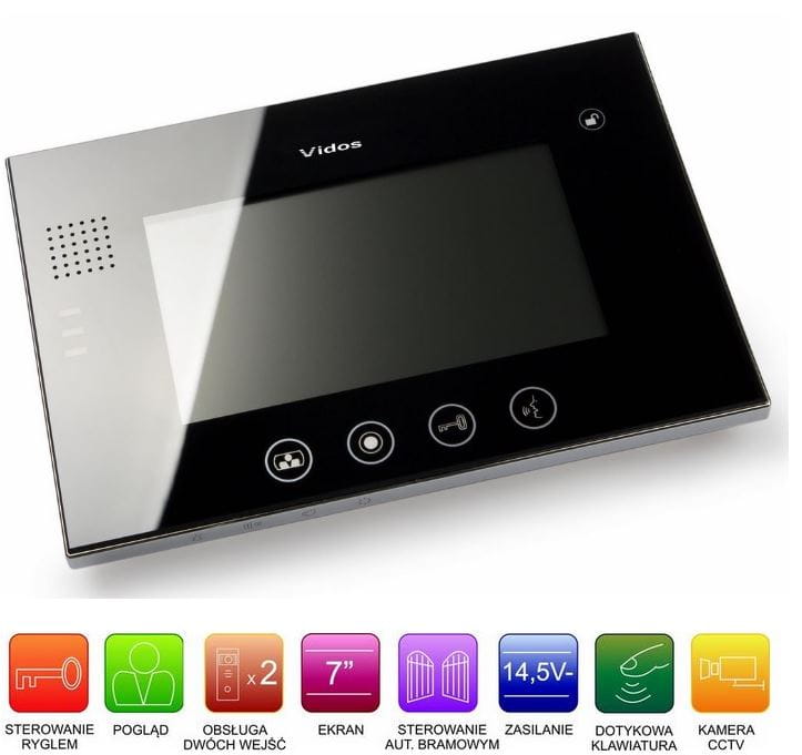 Monitor współpracuje z wszystkimi stacjami bramowymi firmy Vidos, Competition, gwarancja 24 miesiące.