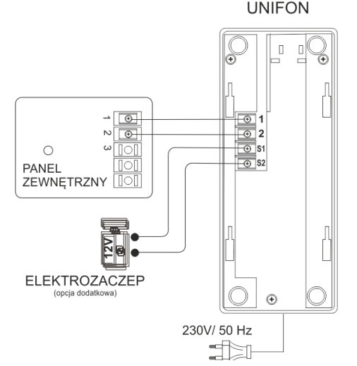 - unifon posiada wbudowany zasilacz i przewód zasilający