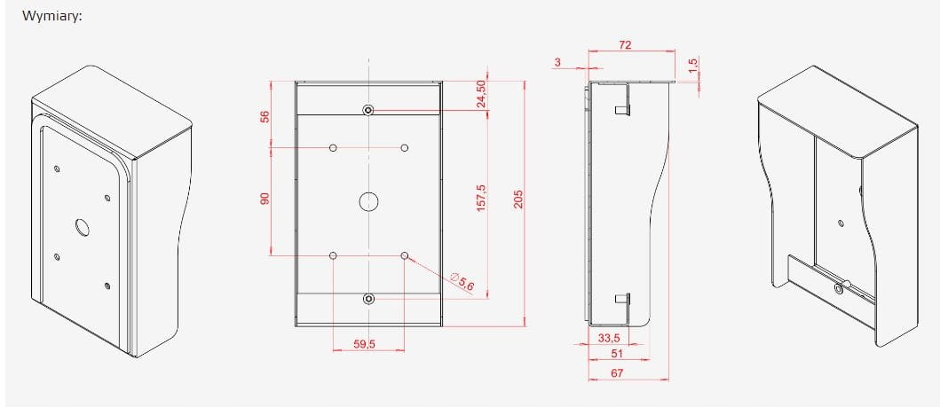 • Osłona do montażu natynkowego stacji bramowych: DR-201A, DR-201AG