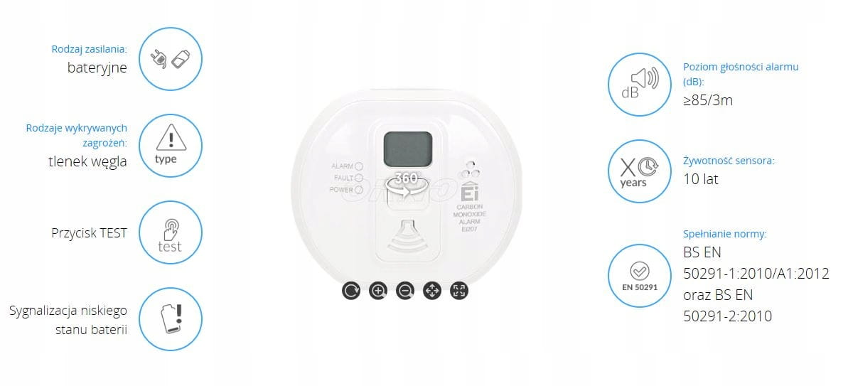 Orno czujnik tlenku węgla z wyśw Ei Ei207D