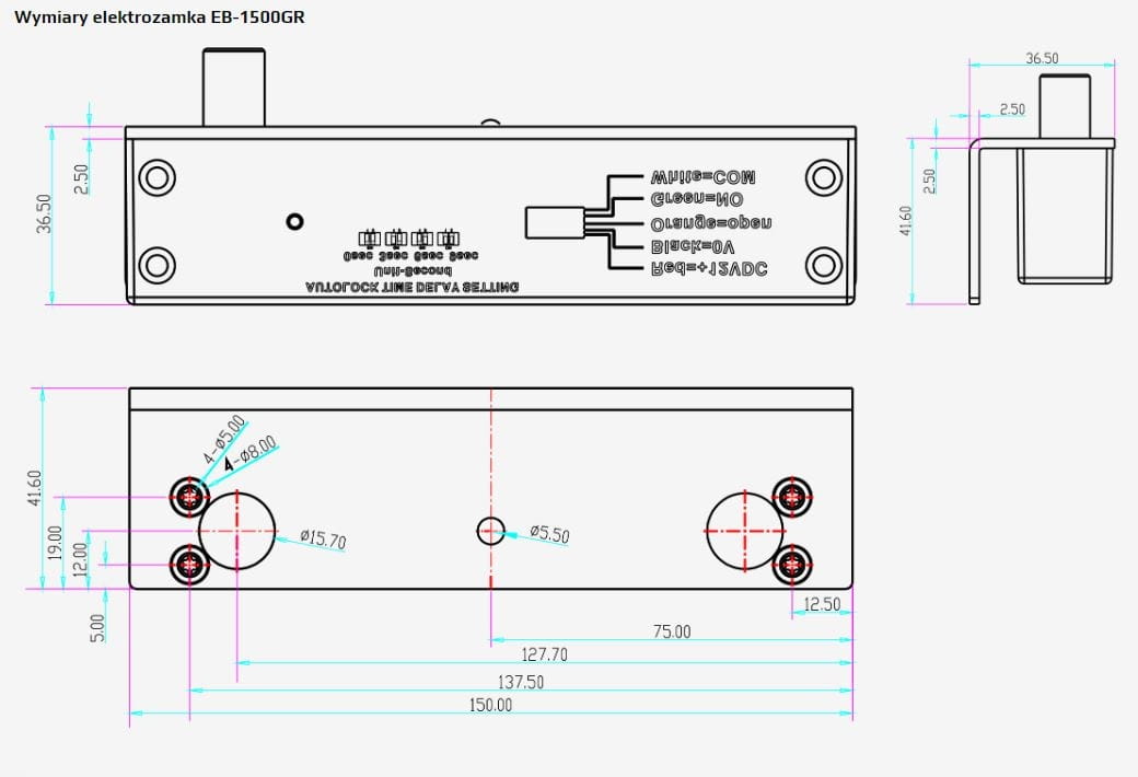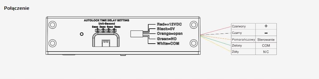 Elektrozamek ma możliwość ustawienia opóźnienia czasowego po którym elektrozamek zarygluje drzwi. Czas ten można ustawić na mikroprzełącznikach na obudowie elektrozamka. Możliwe ustawienia: 0 / 3 / 6 / 9 sekund zwłoki po podaniu sygnału sterującego otwarcie drzwi.