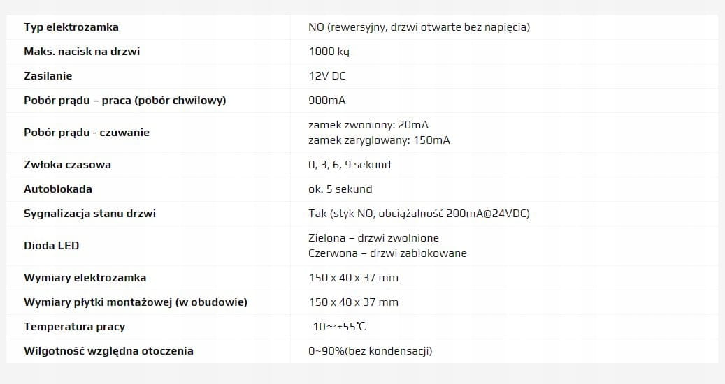 Elektrozamek trzpieniowy wyposażony jest w system atomatycznego zamykania. Jeżeli po zadziałaniu sygnału sterującego i zwolnieniu elektrozamka drzwi nie zostaną fizycznie otwarte - po upływie ok. 5-9 sekund od zakończenia impulsu sterującego ponownie zostaną zaryglowane.
