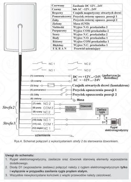 - Ilość wyjść przekaźnikowych (stref): 2