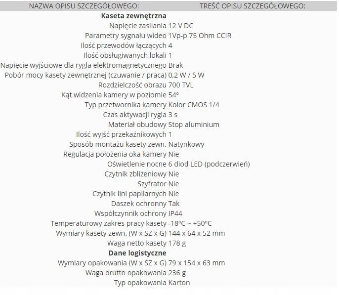 Szara Kaseta zewnętrzna VDA-13A3 dedykowana jest do wszystkich Wideodomofonów pracujących