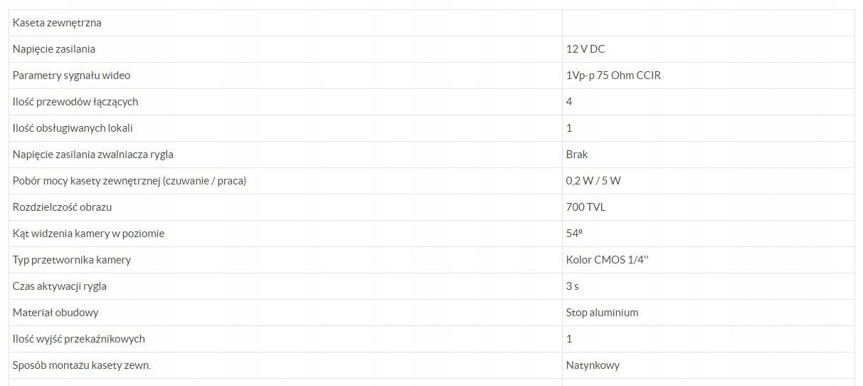 Jednorodzinna Kaseta zewnętrzna VDA-13A3 wyposażona jest w 6 diod LED pracujących w paśmie światła podczerwonego, co umożliwia dyskretny podgląd w nocy. Kamera z przetwornikiem CMOS 1/4 i matrycą