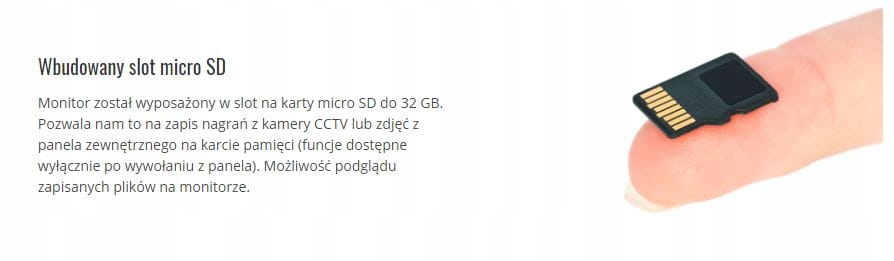 Stworzony do adaptacji. Ten prosty, elegancki i nowoczesny, a zarazem dyskretny panel z ekranem o przekątnej 7 cali sprawdzi się idealnie w każdym mieszkaniu. Urządzenie wyróżnia się dzięki dużemu, kolorowemu ekranowi LCD, podświetlanym przyciskom dotykowym oraz slotowi na karty micro SD (do 32gb)- w celu zapisu zdjęć oraz filmów z kamery.