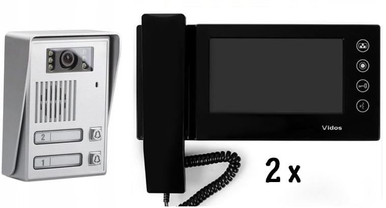 Zestaw wideodomofonowy dwurodzinny marki Vidos.