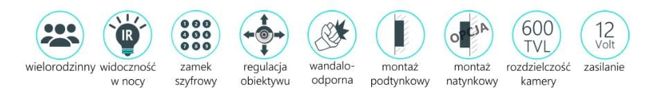 - Sterowanie elektrozaczepem z regulacją czasu otwarcia 1-99sek.