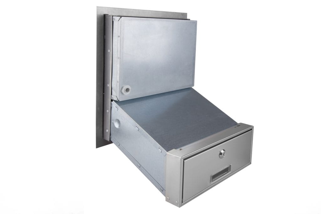 Szuflada o szerokości 260 mm jest skośna, dwuczęściowa i rozsuwana. Szuflada to pojemnik na korespondencję wbudowywany w słupek lub mur. Standardowo wykonany jest z blachy ocynkowanej ogniowo. Dzięki rozsuwanej szufladzie głębokość skrzynki może być regulowana w zakresie 260-410 mm.
