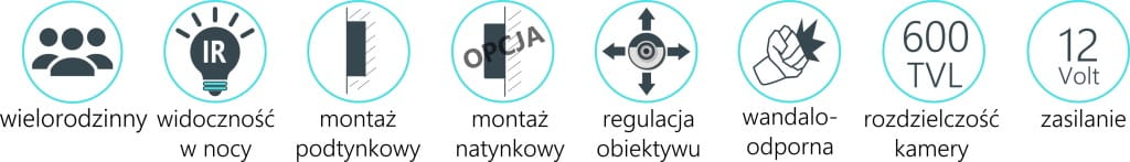 - Stacja bramowa została wyposażona w kolorową kamerę z możliwością regulacji w poziomie i w pionie w zakresie kilkunastu stopni.